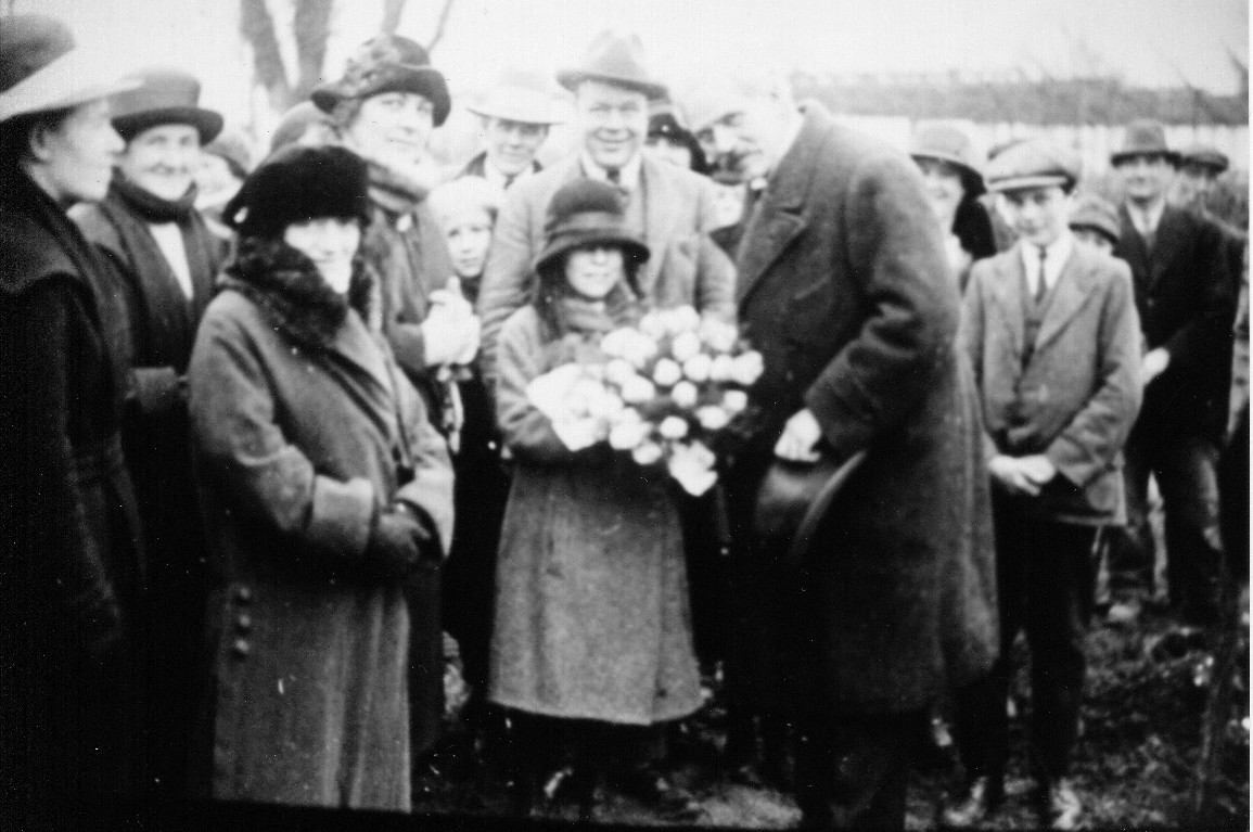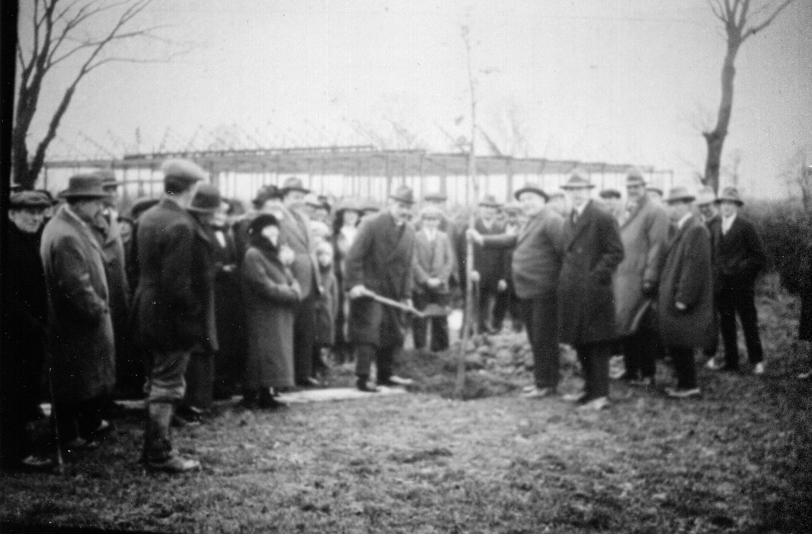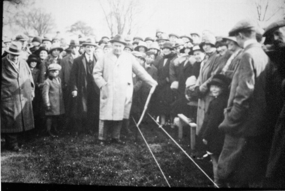 F.H. Crittall laid the Foundation Stone for the first house in Temple LaneSeveral people came down from London to help with the gardening. Here Ramsey McDonald is planting a tree near the Factory
