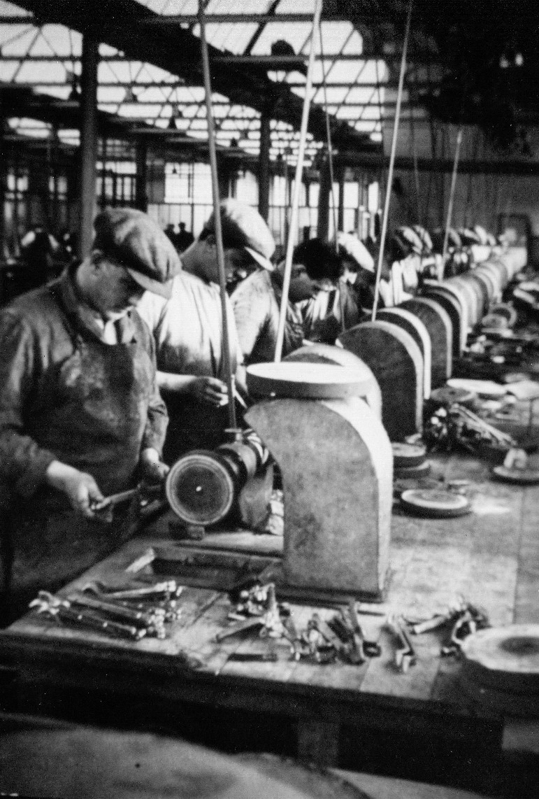 Production in the Factory Click on the Blue links to see the pictures. Jobs were given to disabled ex servicemen Some of the Presses Over head line shafts provided the power The Polishing Lines